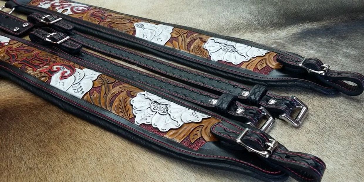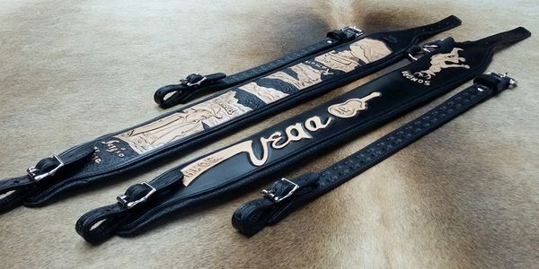 The slings come in a variety of lines. The top of the line are the Heirloom slings. Heirloom slings are fully hand carved, padded and lined with a piping edge. Next, the Standard line is also hand carved and /or tooled. There is also an Economy line with three grades. All the grades of the Economy line are made with the same quality of leather and craftsmanship as the Heirloom and the Standard lines.